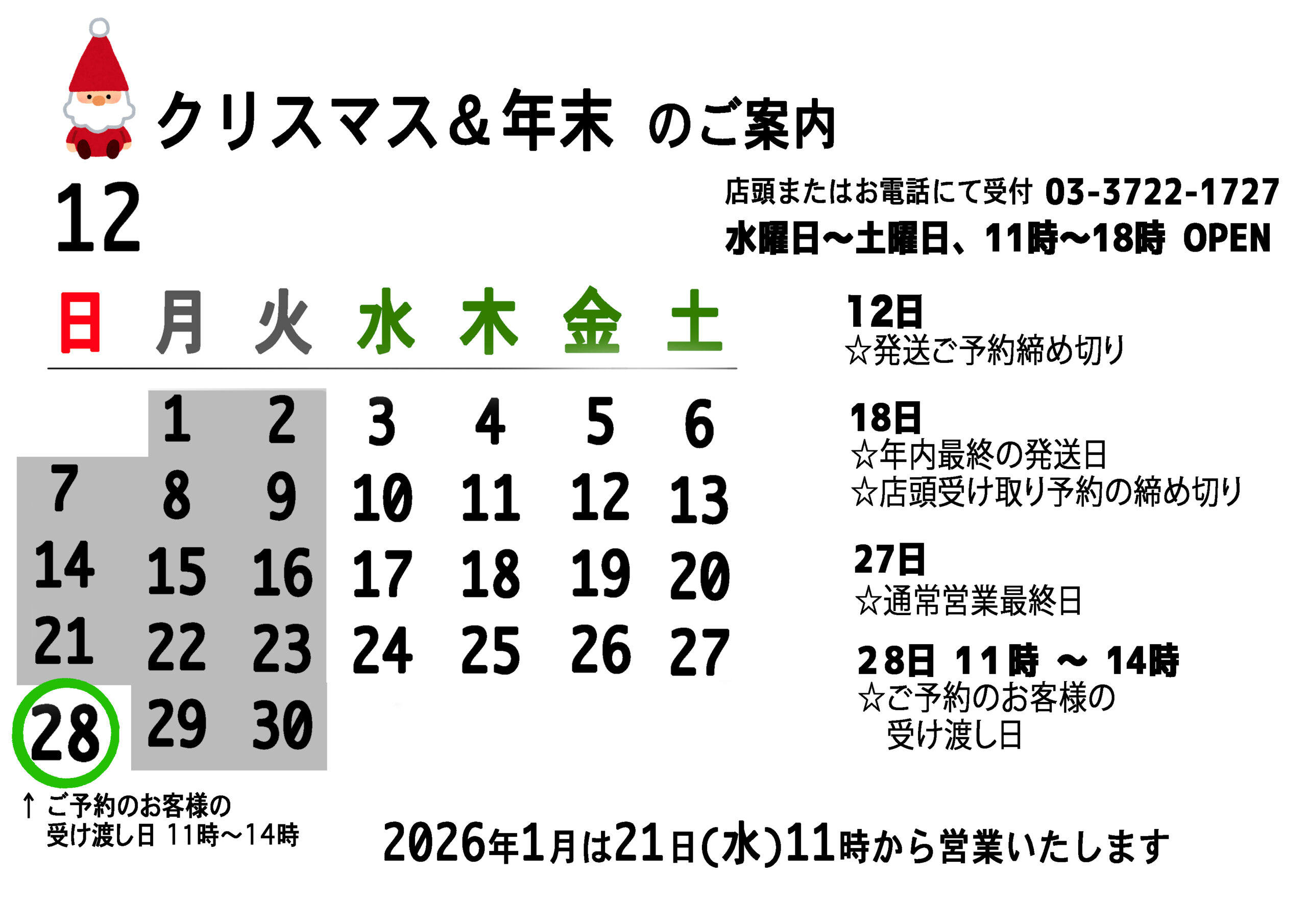 ※予告無く変更することがございます。 《営 業 日》 水・木・金・土 《営業時間》11:00〜18:00